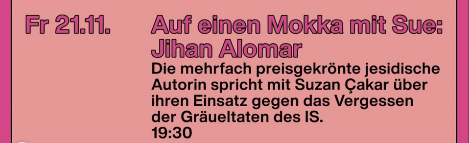 Die mehrfach preisgekrönte jesidische Autorin Jihan Alomar spricht mit Suzan Çakar über ihren Einsatz gegen das Vergessen der Greueltaten des IS.