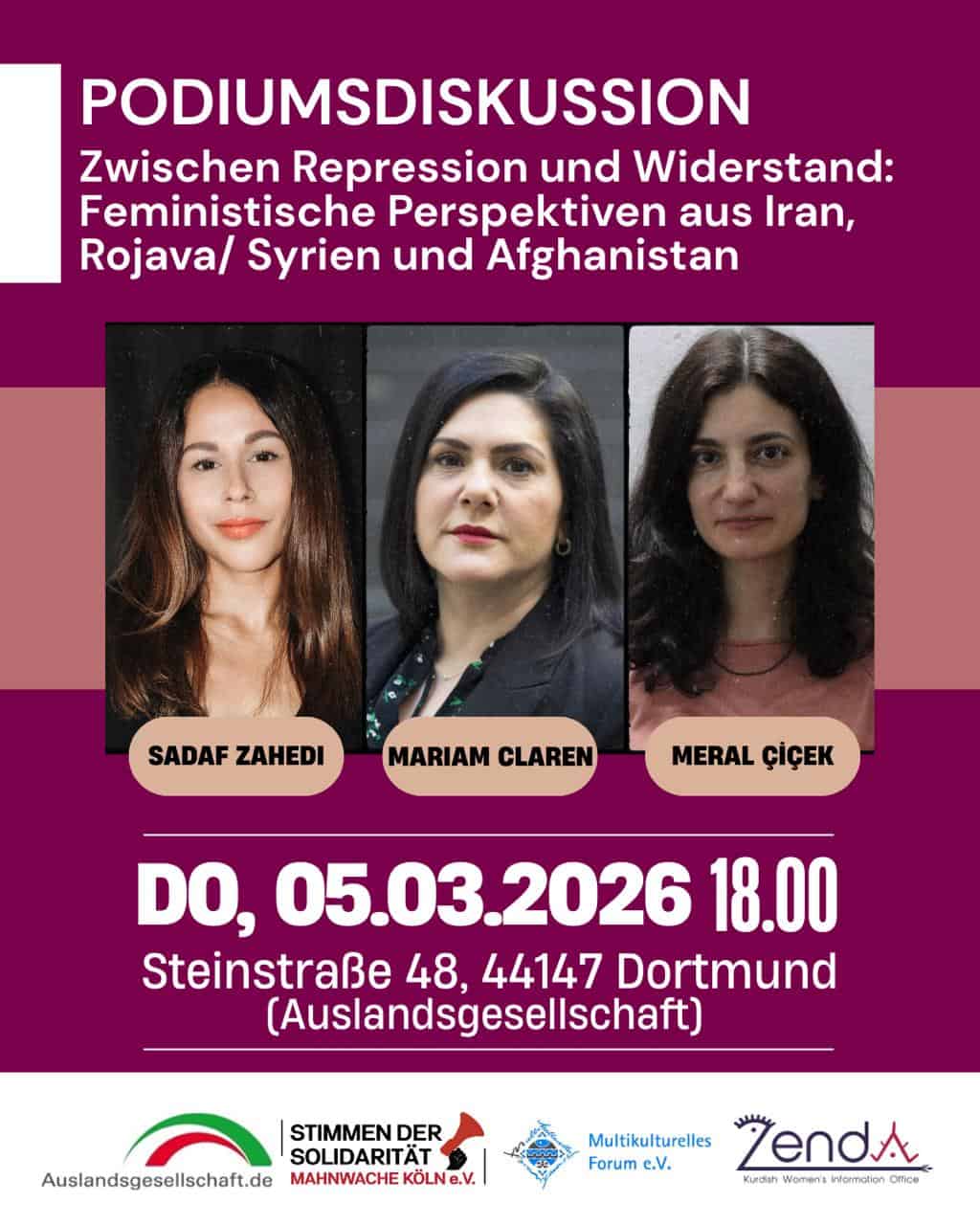 Podiumsdiskussion: Zwischen Repression und Widerstand – Feministische Perspektiven aus Iran, Rojava/Syrien und Afghanistan
